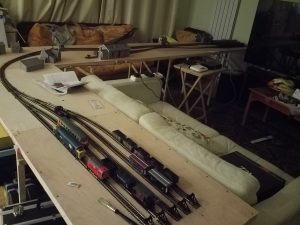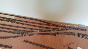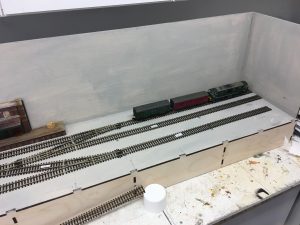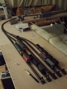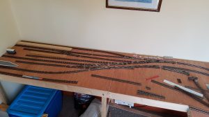 Dave Hughes has been working on his layout which has track pegged out ready for wiring up. It is based on nowhere in particular, just a terminus with goods sidings, so will be suited to 1960s steam/diesel. Basically anything goes! The layout will be DCC which will lend itself to the many shunting possibilities to be had.