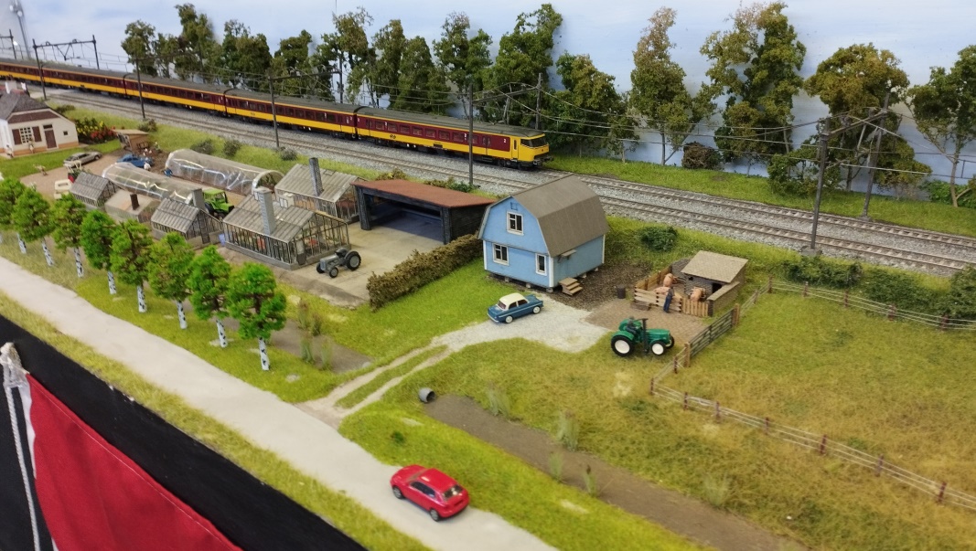 I discovered Culemborg about 18 years ago when I was looking for somewhere to watch Dutch trains go by. As soon as I found the little lane beside the railway line from Utrecht to s’Hertogenbosch and Eindhoven I knew I had to build a model of it, though sadly it has taken me many years to get round to it. The layout is loosely based on what I saw though I have added a few embellishments. In reality there is no windmill, no farm and no station but I felt that just open countryside would look a bit flat. (pun intended) The trains you will see passing by, date from the 1990’s to the present day and are typical of the Dutch railway scene. Many are electric which meant installing overhead wiring. This is cosmetic and does not power the models.